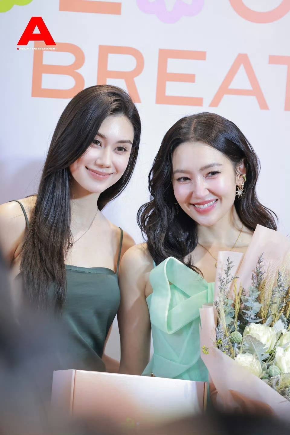 当天,Bella的妈妈到场支持女儿的新事业开幕活动,圈内好友Taew也现身支持,随后,两位美女一同合影留念。